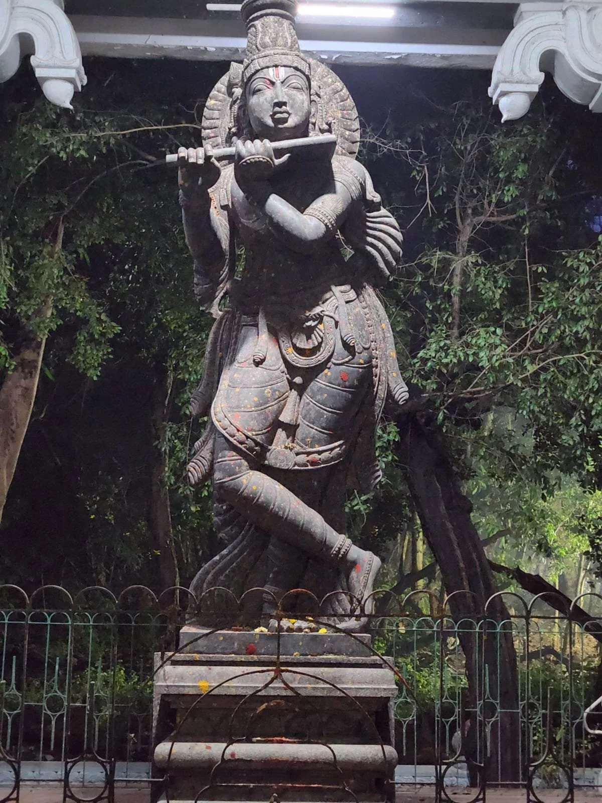 Krishna, the famous king of Dwarka, was known for his wits and tricks, helping the gods and people during their greatest needs. He is known for having his two lovely mothers, Devaki and Yashoda, and how during his childhood, he battled all the challenges sent by King Kamsa, his evil uncle, who locked up his parents and took away their earlier children. He played a tremendous role during the Mahabharat, helping the Pandavas fight against the Kauravas in the Kurukshetra War, protecting Draupadi in her time of need, and ensuring that the Pandavas would prevail against evil. He is particularly known for being Arjuna, the third Pandava brother, chariot driver in the war, giving his guidance as he fought against his cousins and relatives. This knowledge eventually became transcribed in the holy epic The Bhagavad Gita. His story is heavily interconnected with Balaram, the previous avatar of Lord Vishnu.